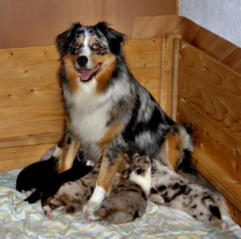 Akiba und Celine mit Welpen