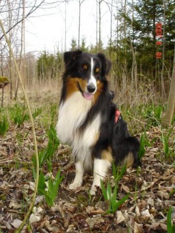 Akiba beim Wandern in den Isarauen